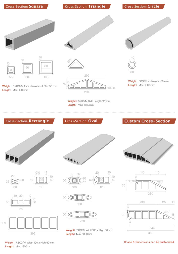 IFL Terra-Facade™ terracotta baguettes, fins, louvres and battens are available in a wide range of profiles and geometries, including, Square sections, Oblong profiles, Oval forms, Triangular sections, Circular cross-sections